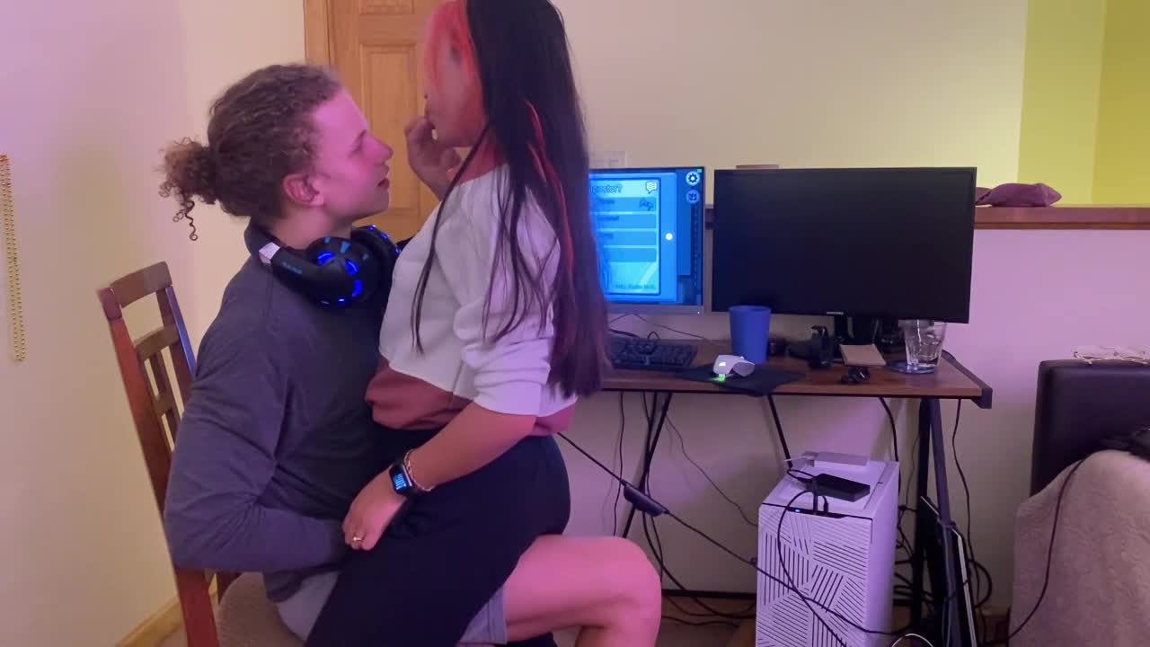 Восточная красавица не дала своему парню поиграть на компьютере.