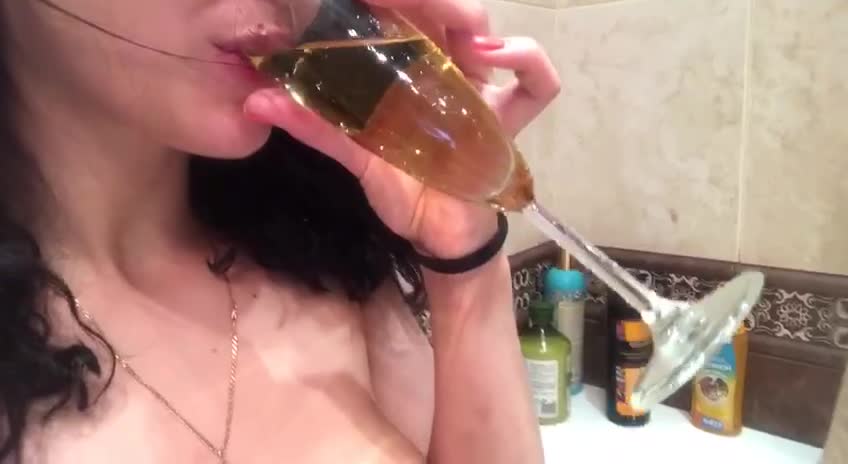 Девушка снимаеена камеру как она писает в стакан и пьёт