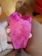 демонстрирует свои прелести позируя в розовом нижнем белье, лаская вибратором свою киску