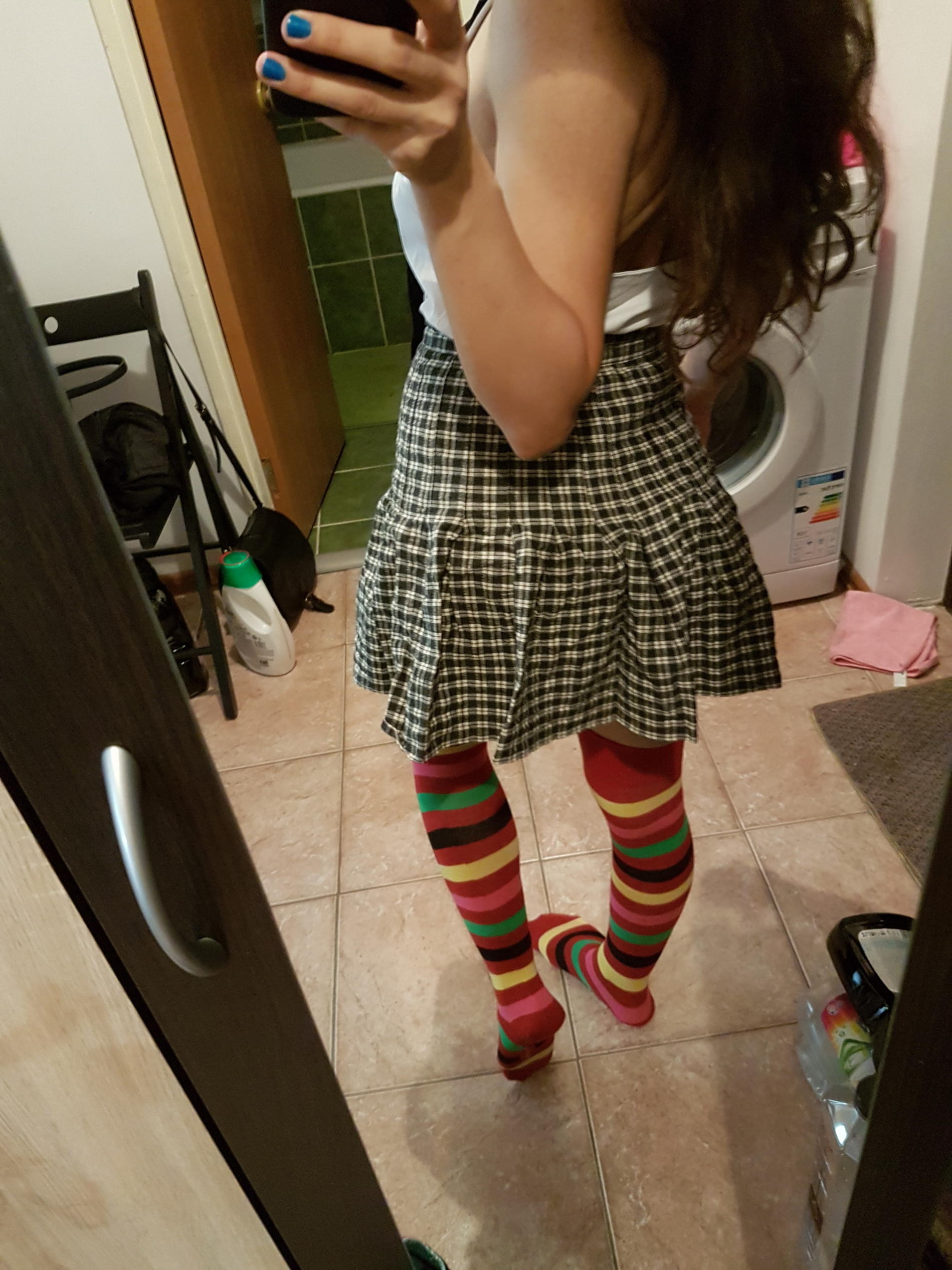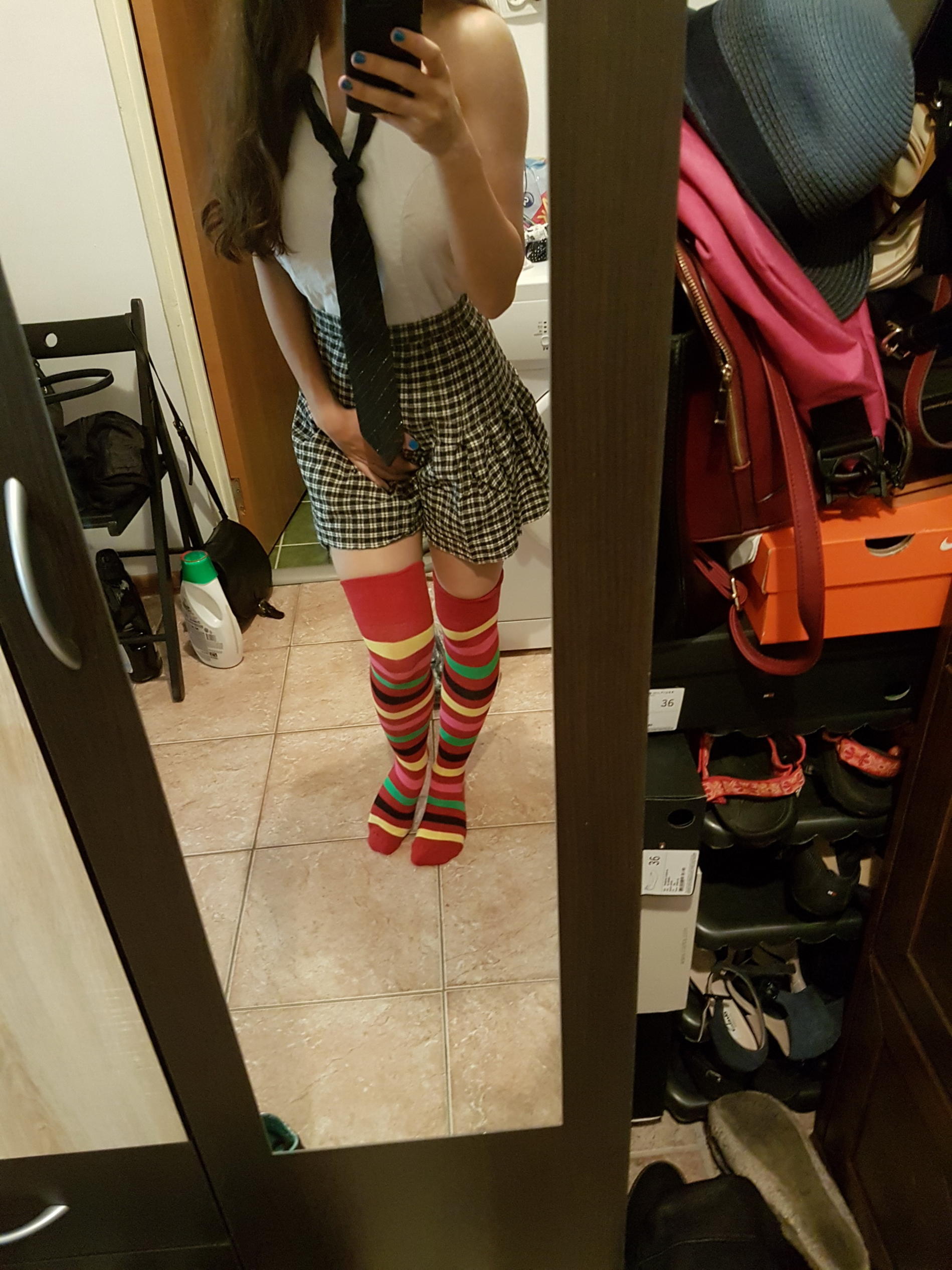 Трусы совершенно не школьные, поэтому их сразу снимать надо было , образ не искажать !..