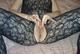 Дамочка в сетчатом костюме позирует, а затем отдается фотографу.
