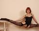 рыжая девушка в сапогах показывает нам потрясную растяжку и красивую свою киску