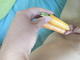 дамочка развлекается с овощами, проникая в глубины своей вагины