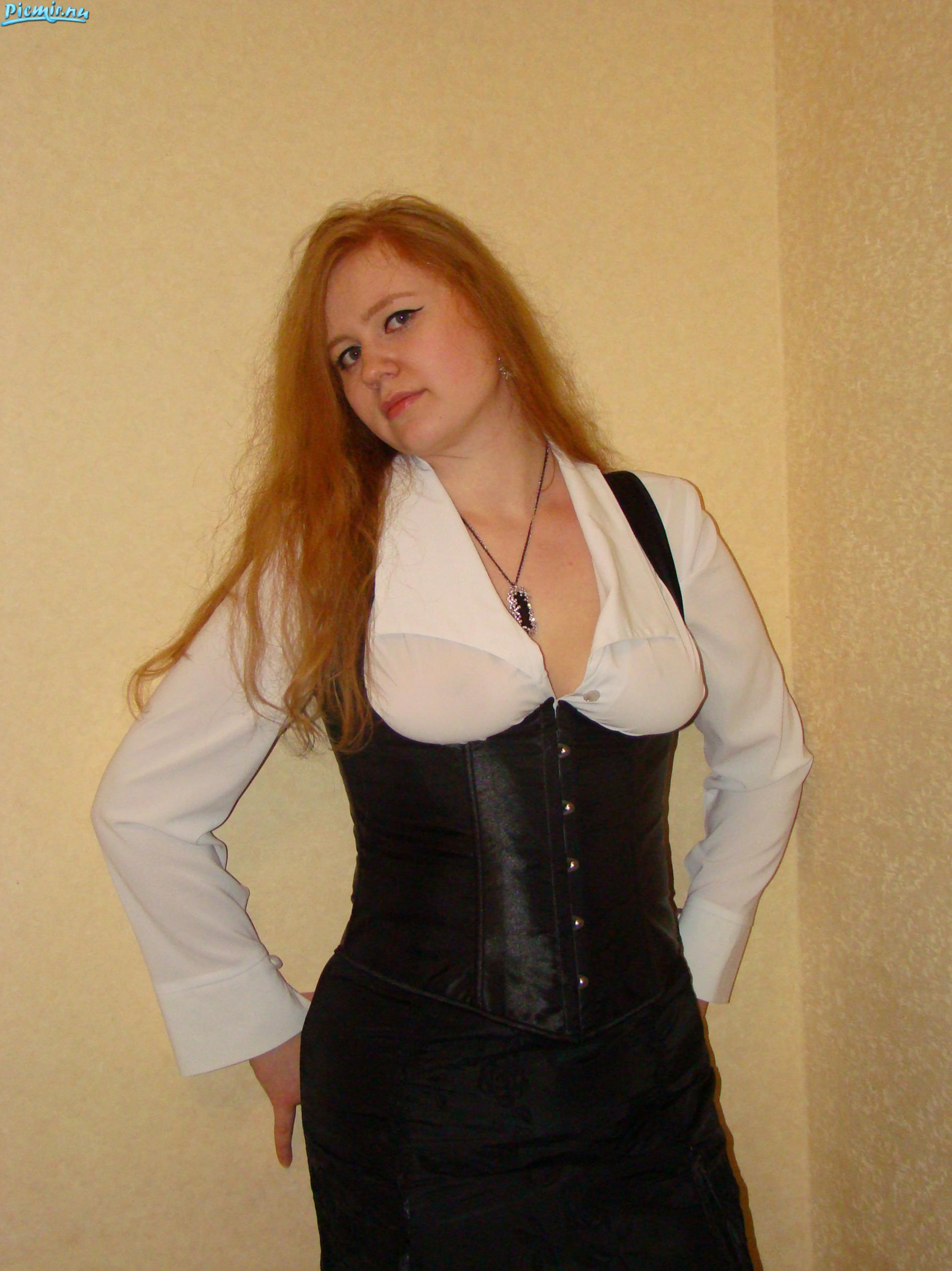 Белая блуза, под такой корсет. Для мужчин просто вызыв.