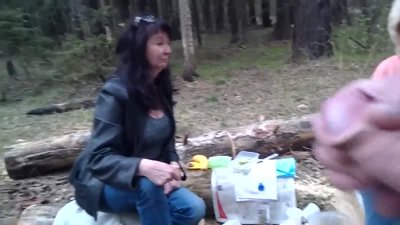 паренёк мастурбирует в лесочке перед зрелыми дамами!