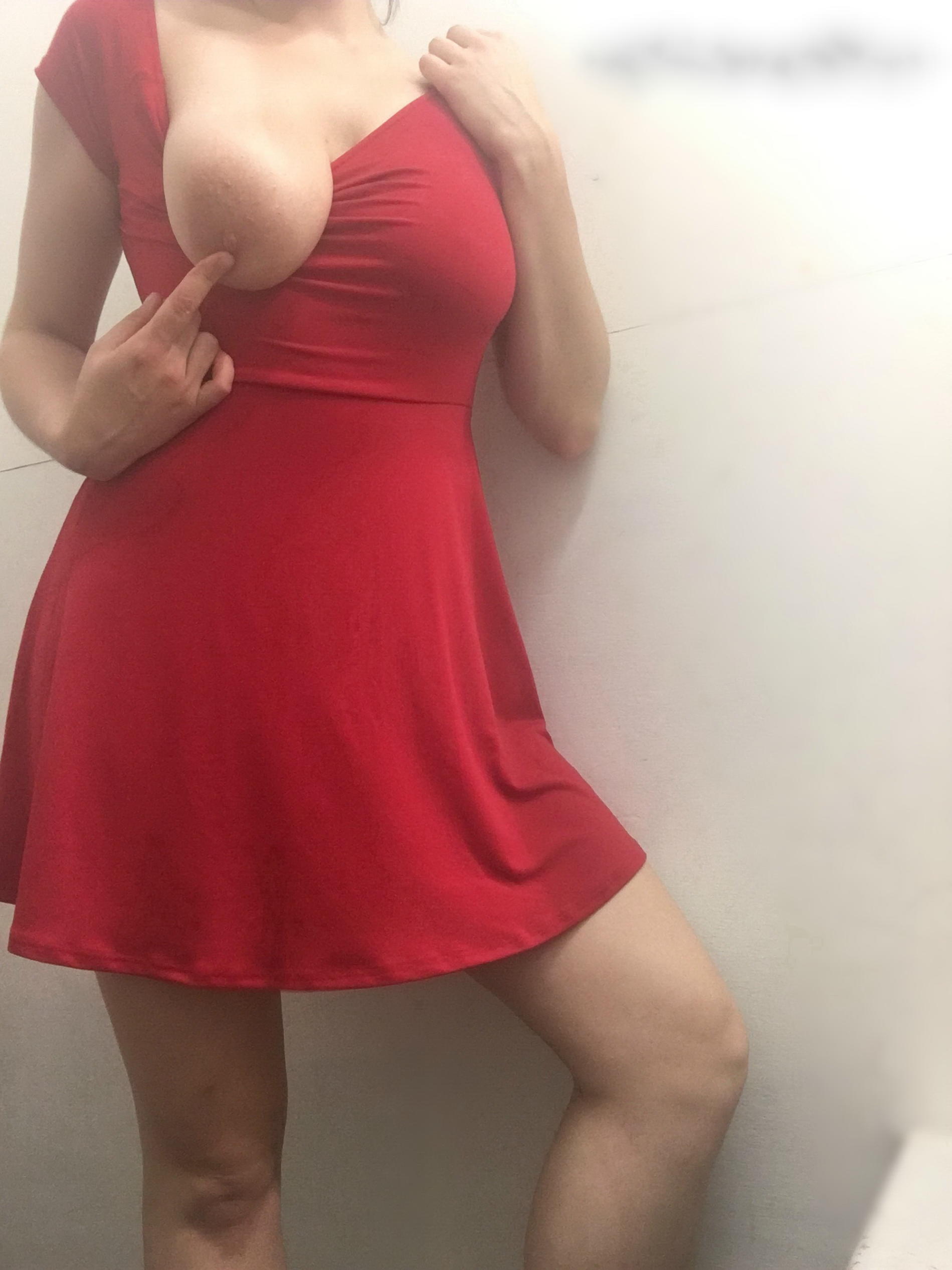 Большие ореолы груди на фоне ярко красного платья - очень красиво и возбуждающе смотрится!