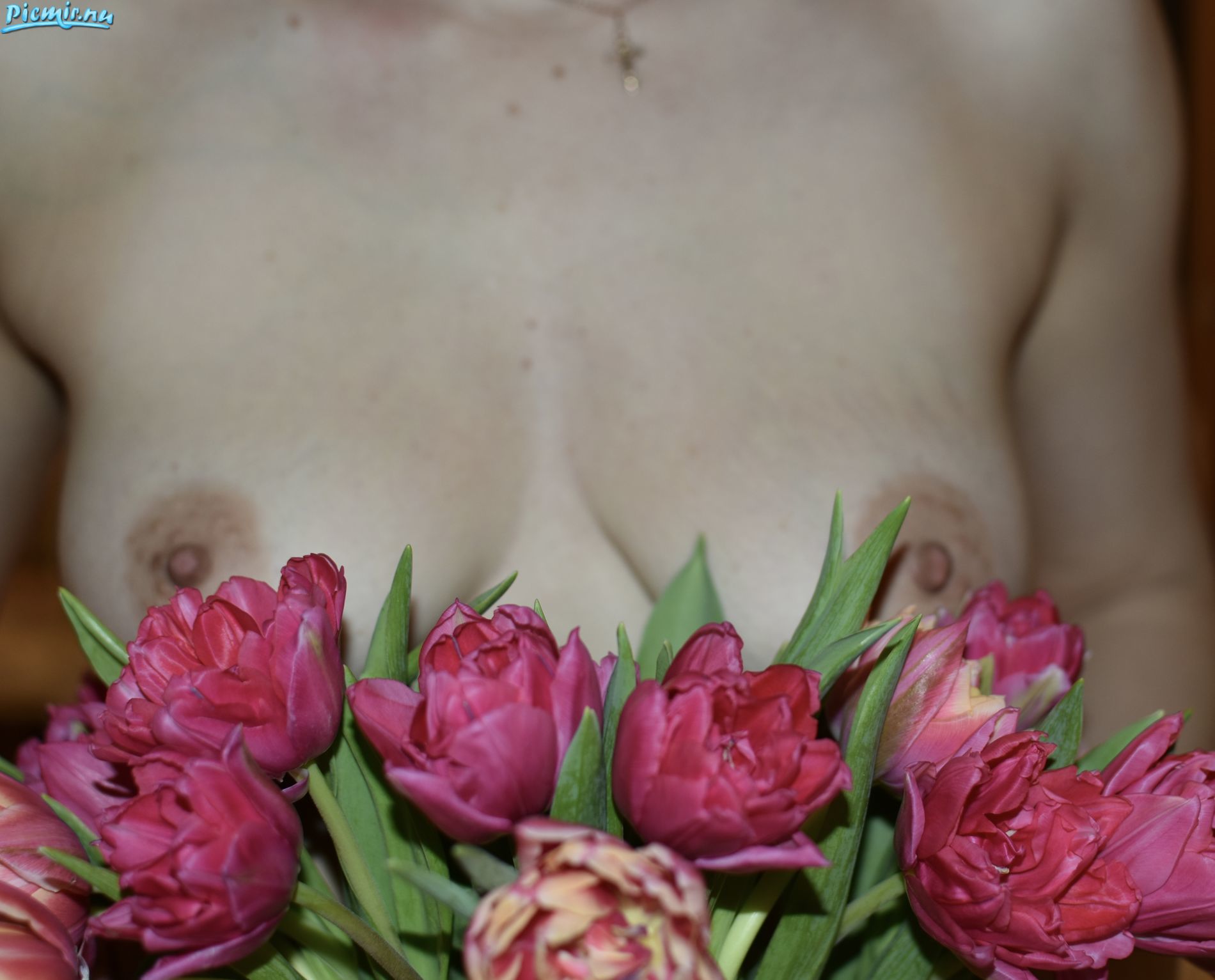 Подарил любимой цветы. Получил приятный подарок который начался с фотографий груди.