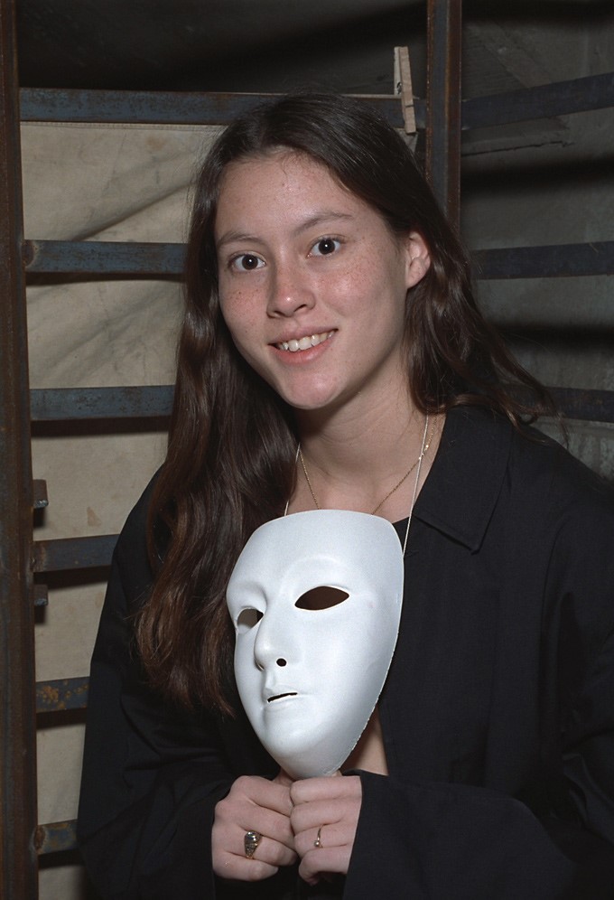 Джесси снимает маску перед тем, как раздвинуть стриженную киску