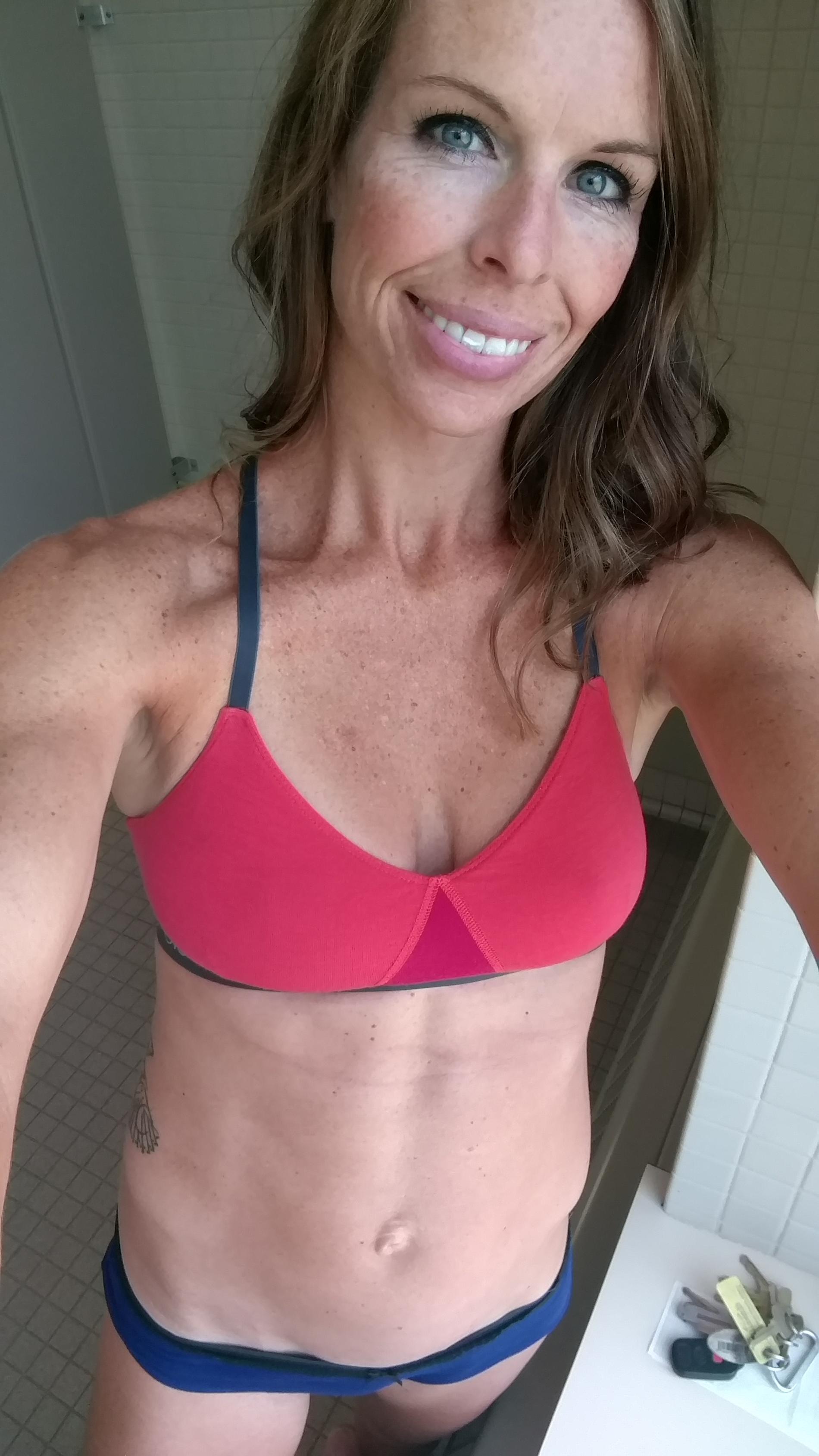 зрелая дамочка со спортивным телом демонстрирует себя и свои прелести