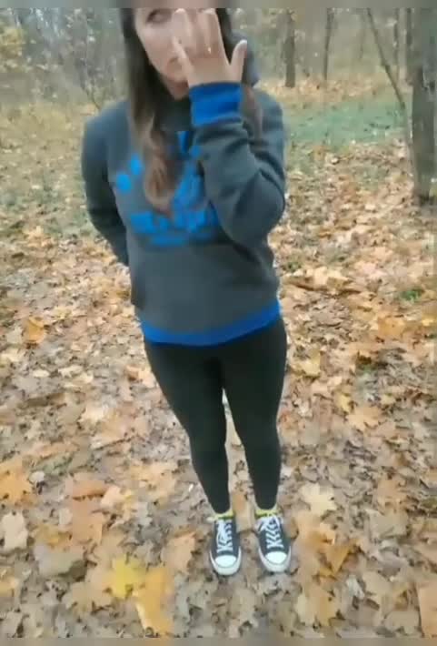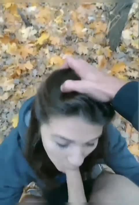 Гуляя по осеннему лесу, девушка подразнила парня сиськами а потом отсосала ему член с окончанием на язык. А потом показала свои дырочки.