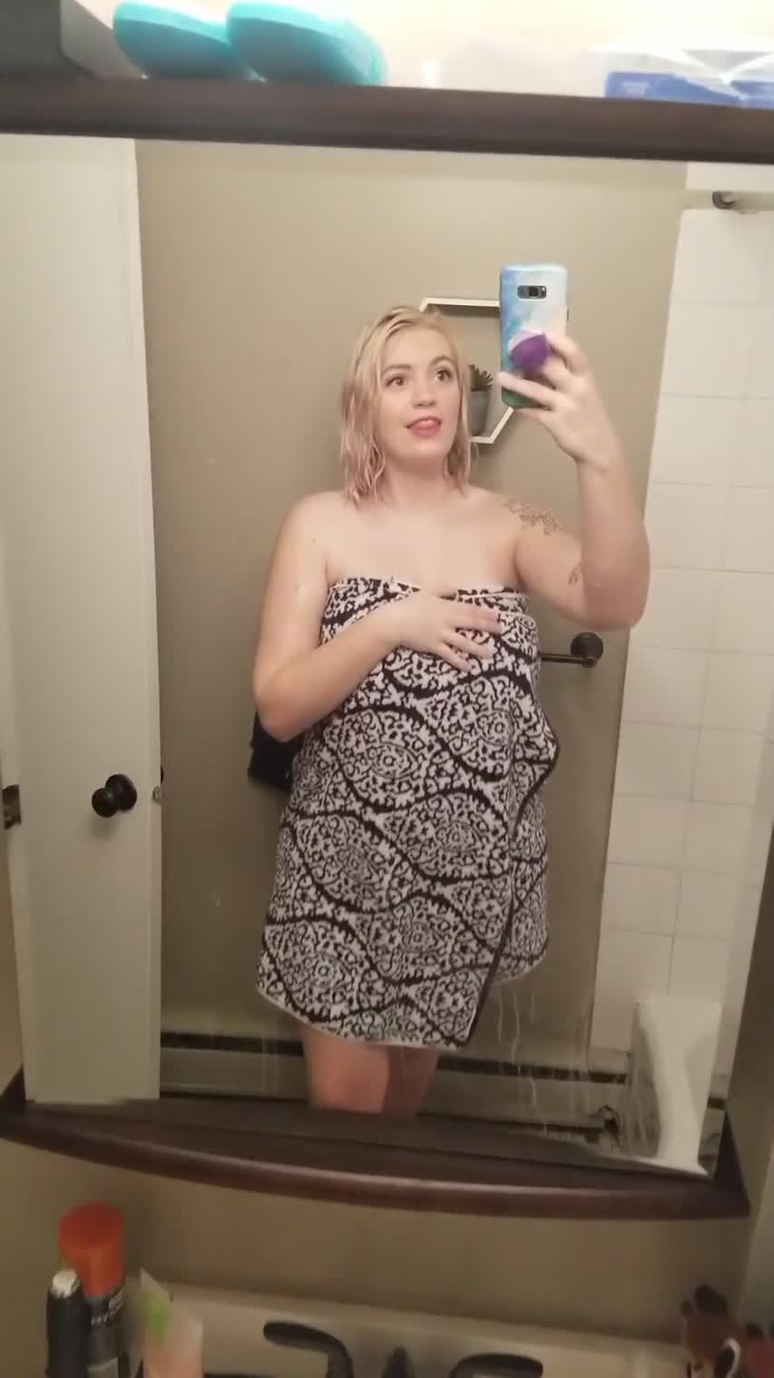 Красиво скидывает полотенце и показывает себя, потом попой поворачивается)