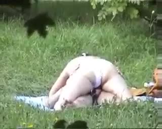 лето, лесная полянка..молодая пара не ожидая посторонних развлекается потихоньку