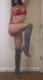 эротично позирует демонстрируя своё сексуальное тело, снимает свои трусики и заправляет их себе в пиздёнку