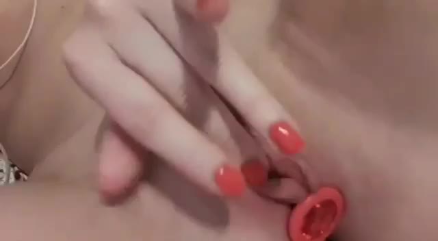 Возбуждающе девочка ласкает пальчиками свою влажную розовую писулю!