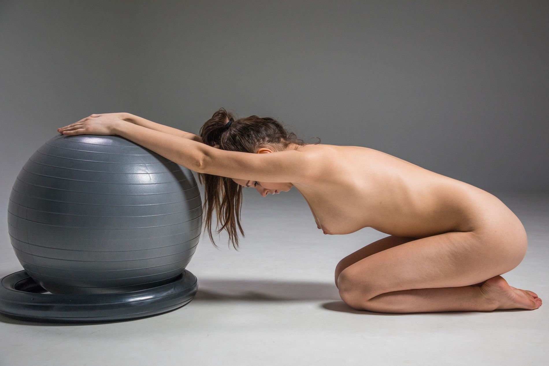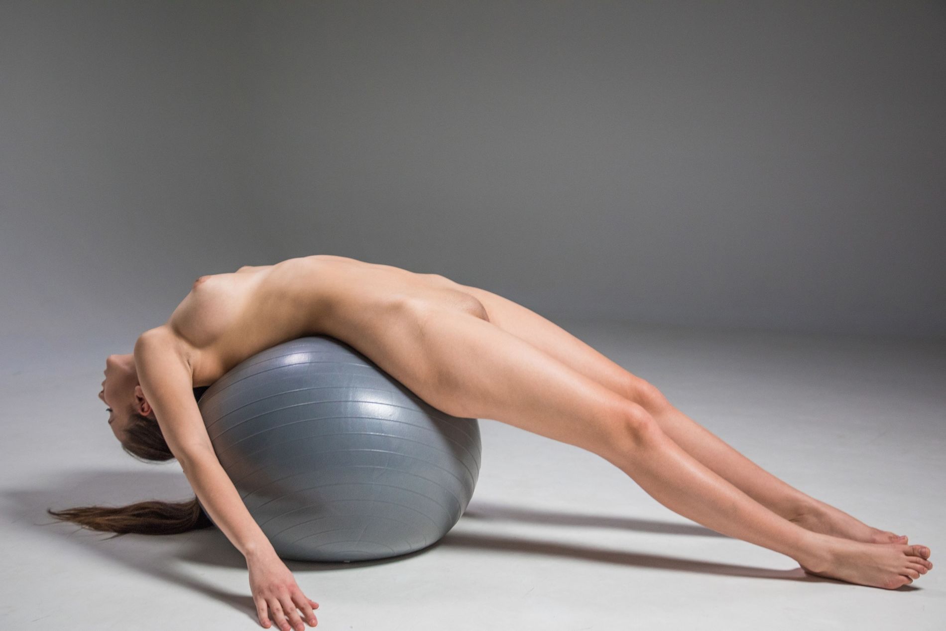 Украинская модель Alisa I позирует на гимнастическом шаре
