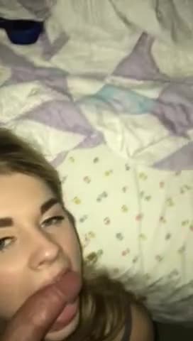 Малышка нежно и размеренно ласкает член своими губками и облизывает его бархатным язычком