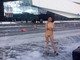 прямо возле людей стоит голая на улице и фотографируется