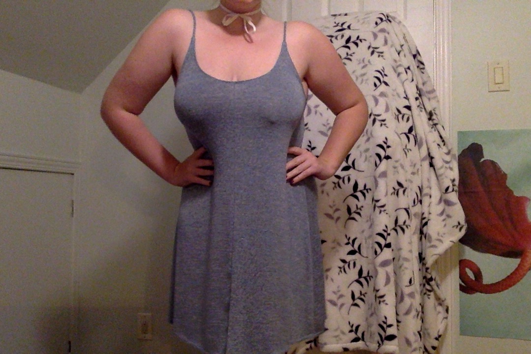 девушка с привлекательными титьками снимает с себя платье и трусы, и показывает свои интимные прелести