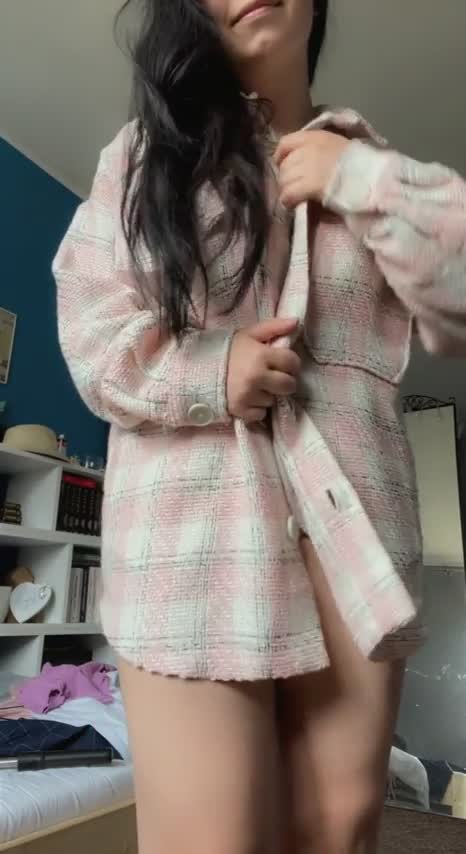 Девушка показала свои сиси, сняв с себя тёплую рубашку.
