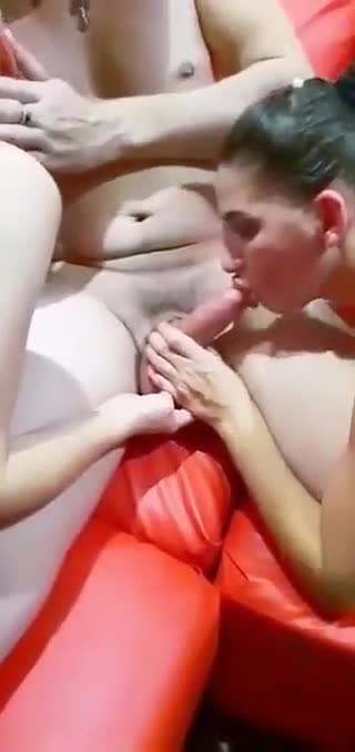 Парень с двумя девками расслабляемся, а друг снимает.
