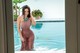 Сексапильная женщина выставляет напоказ массивные сиськи из прозрачного платья перед сексом