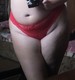 Солидная попень у пышной дамы в красных трусах и чёрном лифчике!