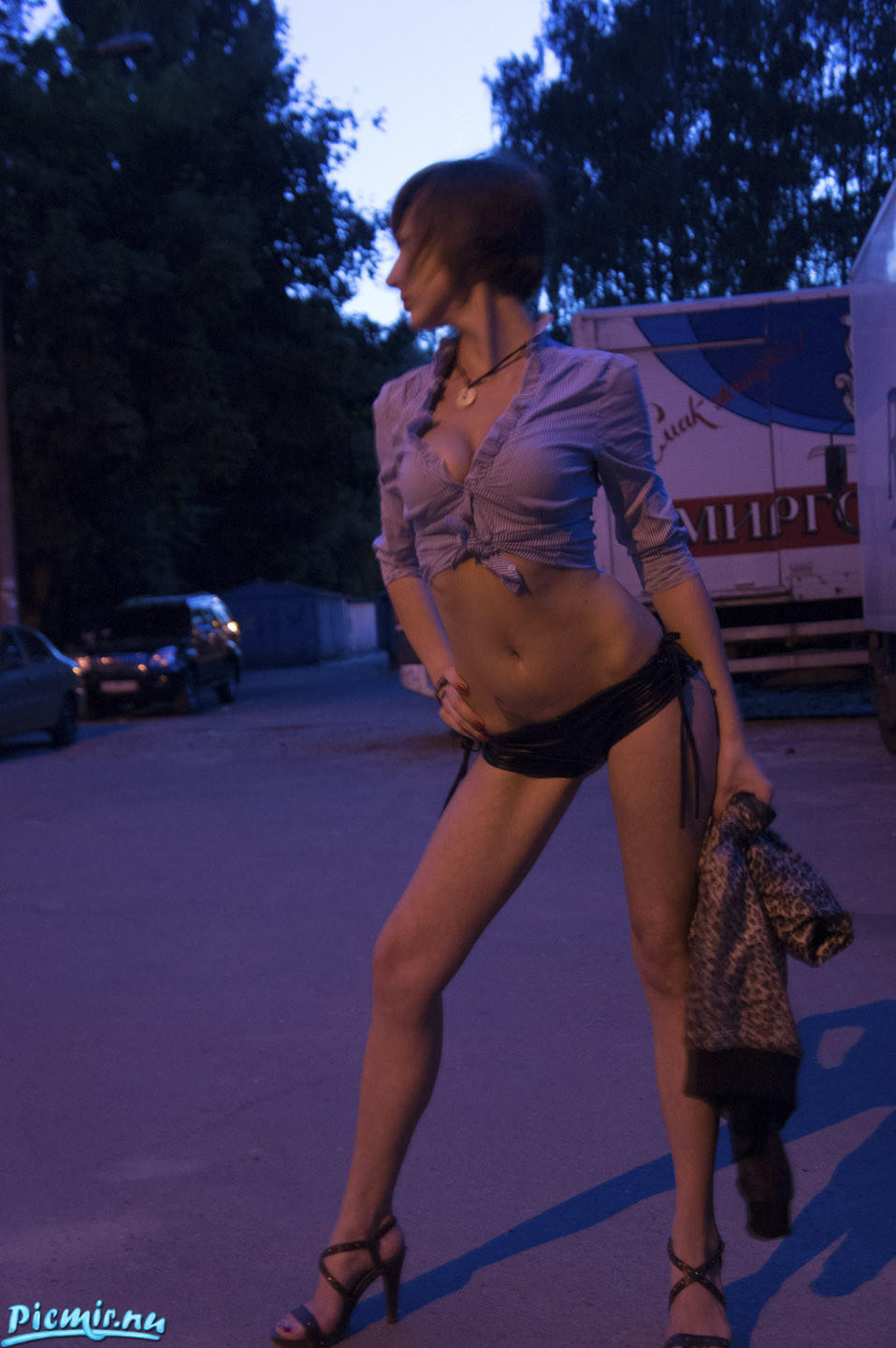 Шикарная тёлка красиво гуляет. Надо было полностью раздеть её на улице