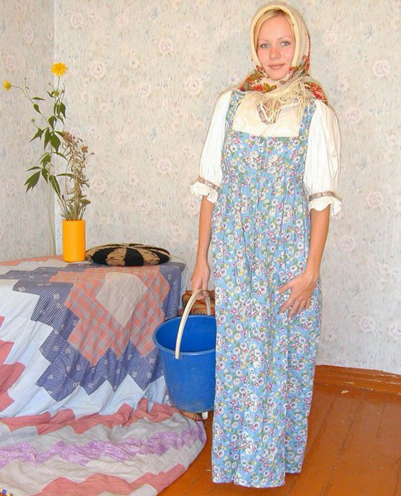 Девушка одела на себя тот наряд, который раньше ещё одевали замужние женщины.