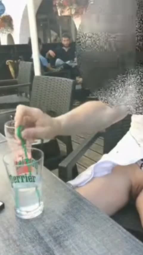 Ловко у нее получилось бутылочку в писюху засунуть в людном месте