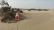 Привлекательно женщина по песчаным дюнам голышом гуляет!