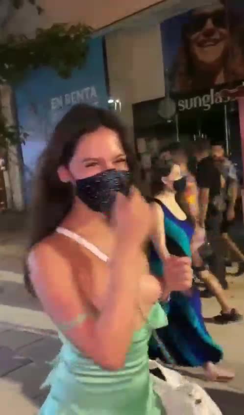 Девочка совсем без комплексов и без проблем оголяет свои милые сисички прямо на улице