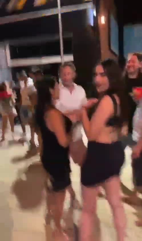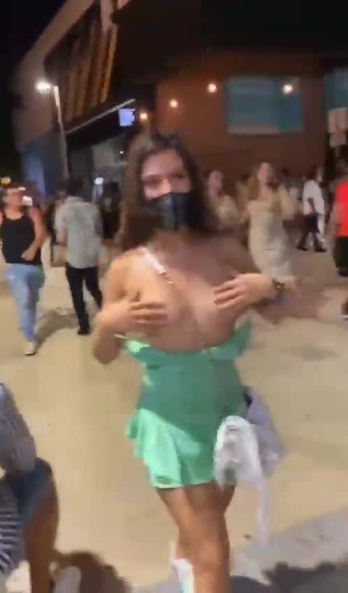 Безбашенная девка привлекательно свои сисечки оголяет на людях!