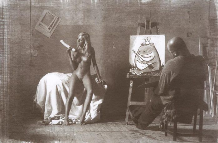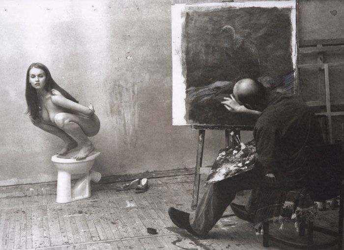 Оригинальное видение художника, на крайней. Три попы, это три розетки.