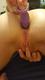 девушка с зажимами на сосках и "звездою" на грудях ублажает свои дырочки секс игрушками