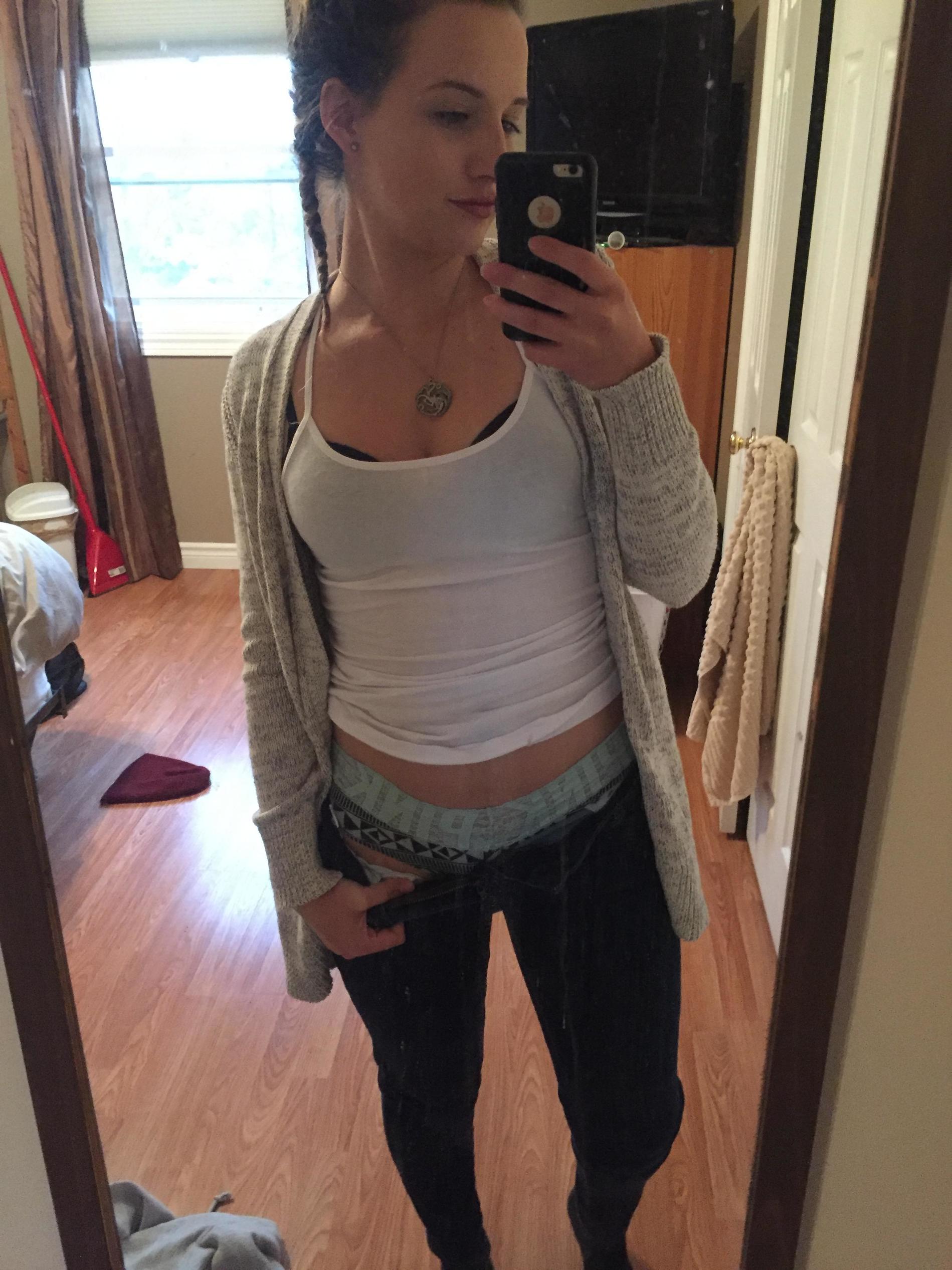 стоя напротив зеркала девушка постепенно раздевается снимая себя на камеру телефона