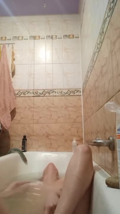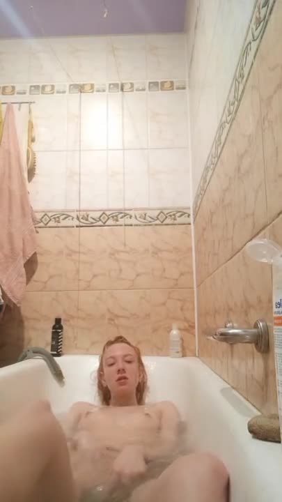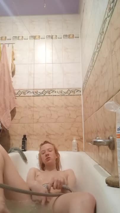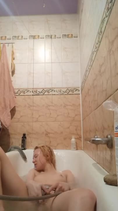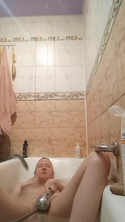 стройная блондиночка мастурбирует и кончает лёжа прямо в ванной