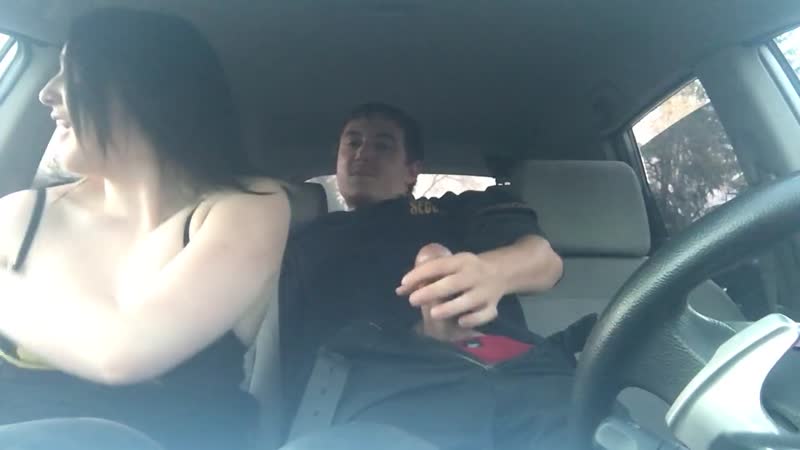 Жена делает минет мужу в машине, снимая все на видеорегистратор. А парень быстро сдается и заливает умелице полный рот)