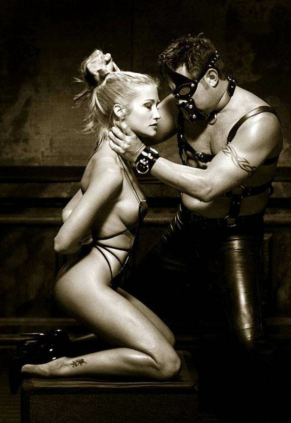 На первом фото какая-то тематическая нелепость. Раб (нижний) в ошейнике и наручах доминирует...
