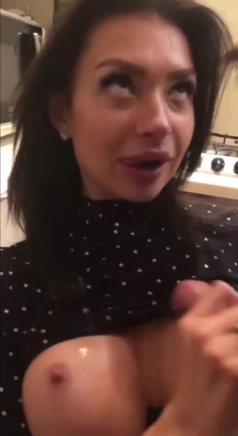 анастасия знает свое дело,как спускать в конце себе на сиськи