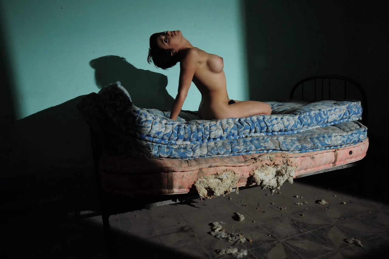 ну могли бы хоть матрас поменять или прикрыть...ебаные фотохудожники