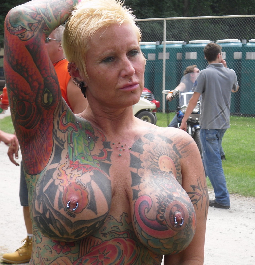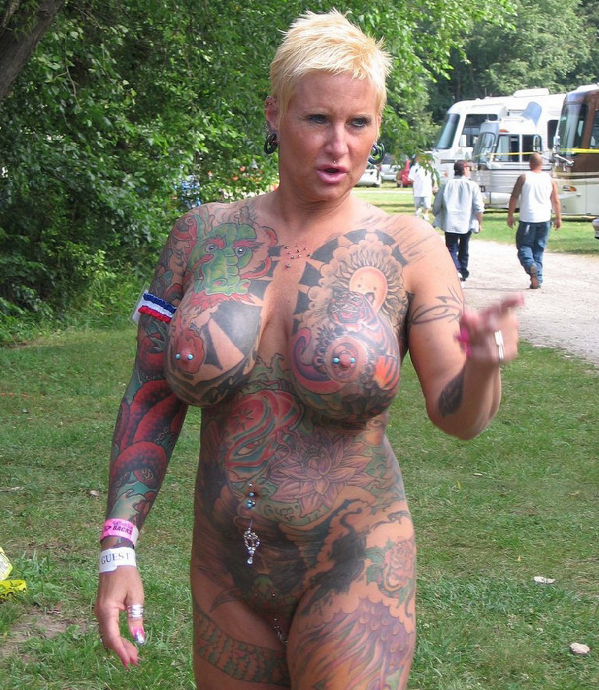 Явный перебор конечно. Мне всегда было интересно узнать то, что мотивирует их разукрашивать свое тело. У нее татау выполнено довольно неплохо, но иногда встречаю на улце таких... Все тело черное как большой синяк.