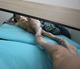 на постели перед зеркалом