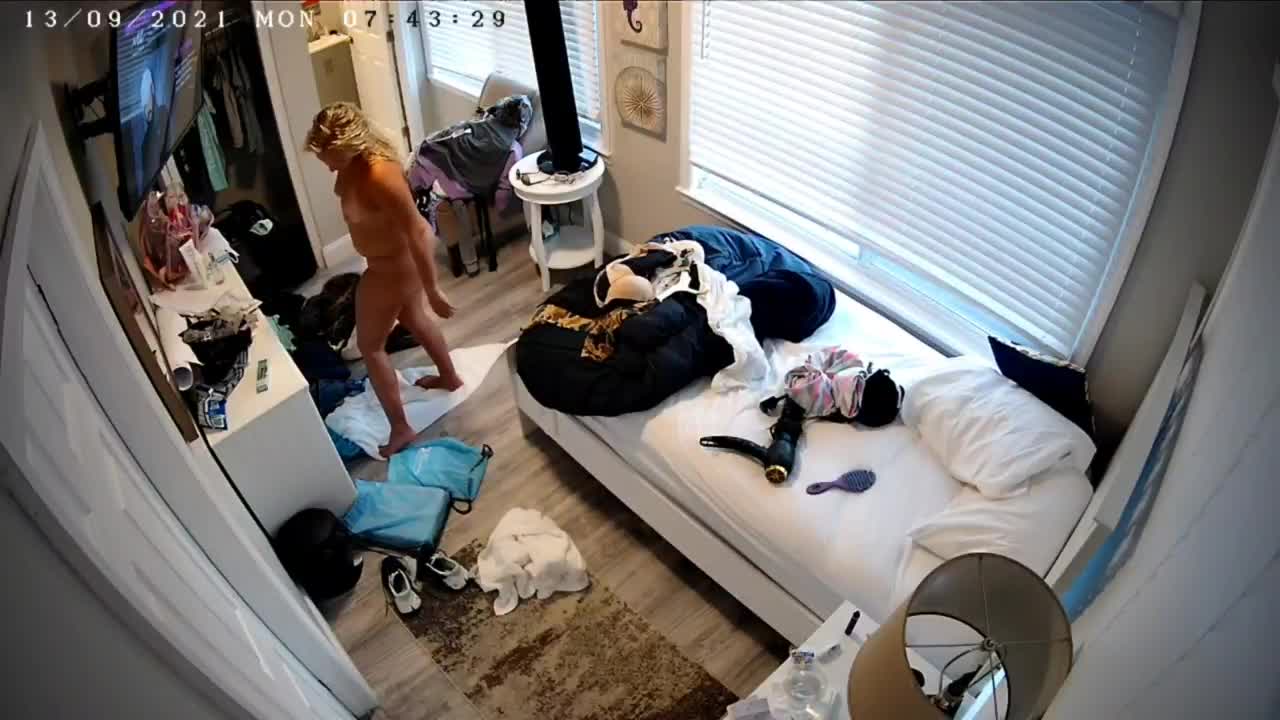 Привлекательна эта загорелая пухляшка у себя дома одевающаяся после принятия душа!
