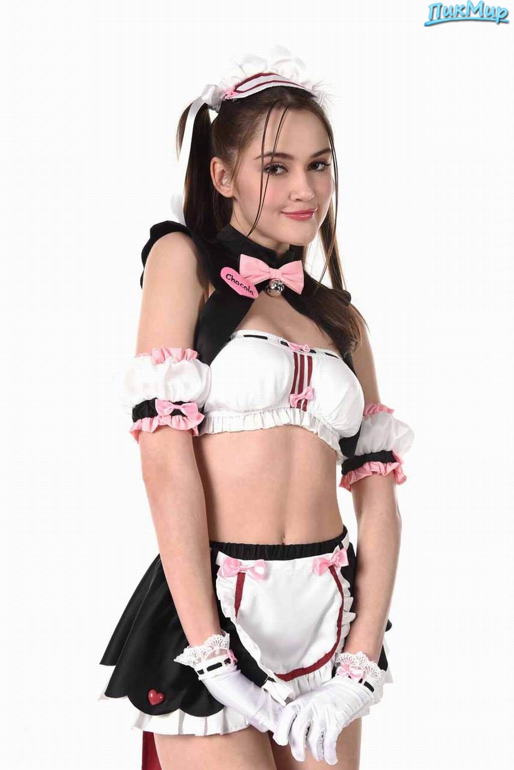 Неплохим получился студийный стриптиз стройной брюнетки в костюм горничной наряженной!