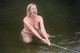 Женщина полностью голой непринуждённо позирует на озере старого карьера