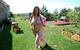 сисястая дамочка в деревне ходит по двору голышом, показывая всем свое тело, слегка отвисшие от объема груди и бритую киску