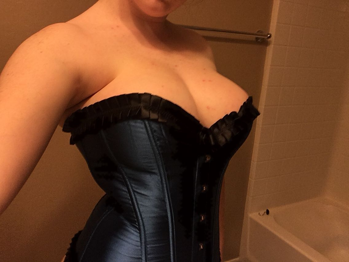 пышногрудая девчонка красуется в корсете и обнажённой демонстрируя свои большие натуральные сиськи