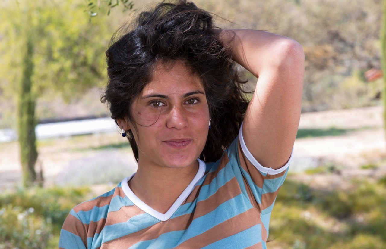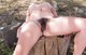 Грудастая брюнетка раздвигается догола под деревом, показывая волосатую киску крупным планом