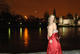 Изящная девочка в ночной Москве отлично позирует.