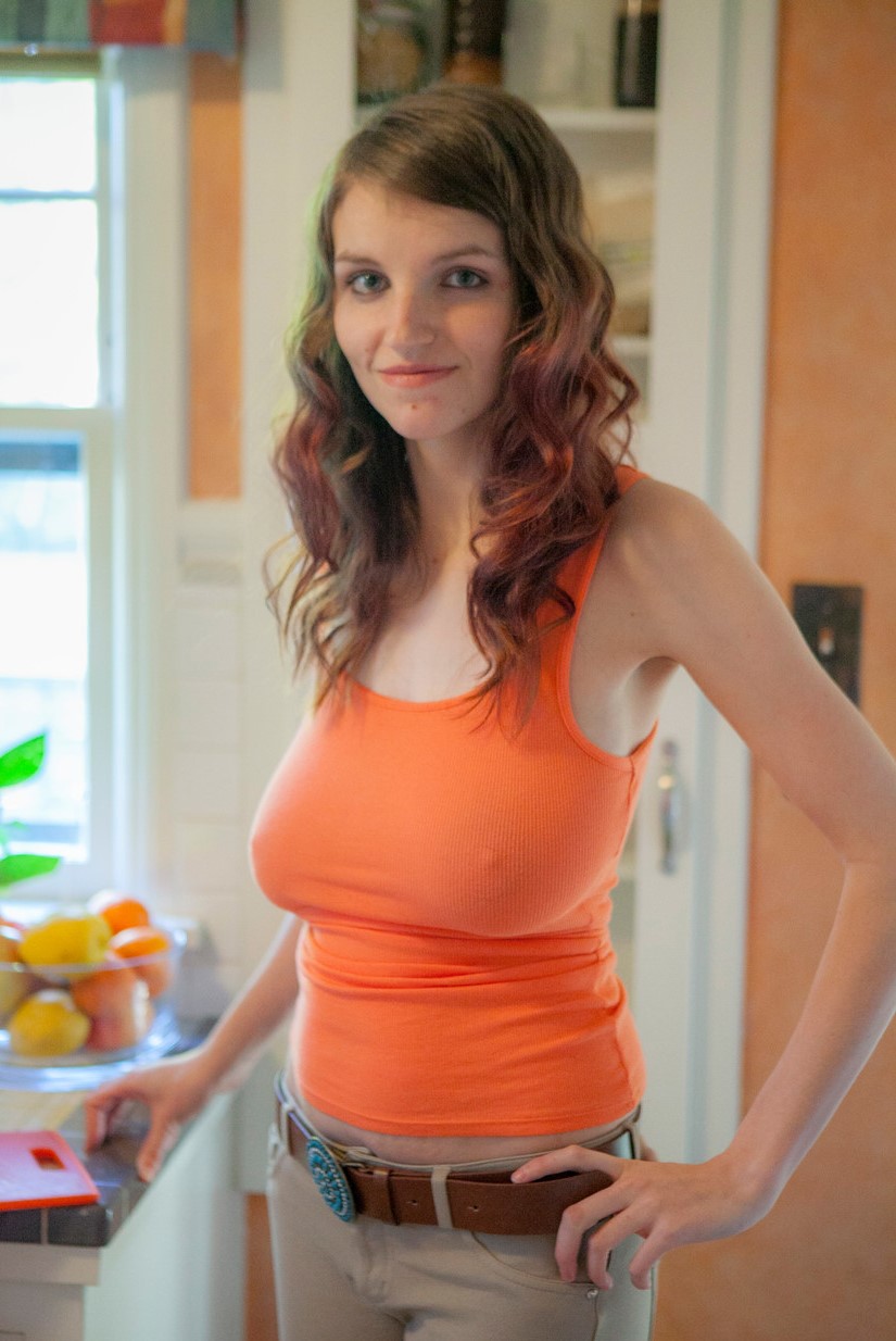Худая и с большими и висячими сиськами, это просто бомба, кайфую от таких